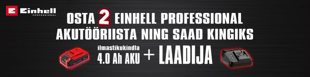 Osta vähemalt 2 Einhell professional akutööriista ning saad kingituseks akulaadija ning 4.0 Ah PXC Sealed aku. Einhell professional seeria tööriista tunned ära TP markeeringu järgi.