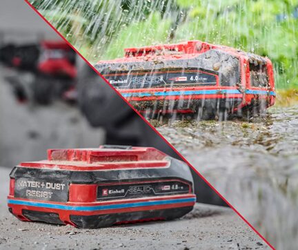 Einhell PXC Sealed aku on IP57 kaitseklassiga (kaitstud tolmu ja veepritsmete eest) ning mõõtudelt väiksem võrreldes tavapärase 4.0 Ah akuga.