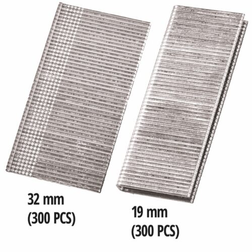 Sobib kasutamiseks 15–32 mm pikkuste naeltega (paksus: 1,0 mm) ja 13–25 mm pikkuste klambritega (laius: 5,7 mm). Komplektis on 300 naela (32 mm) ja klambrit (19 mm).