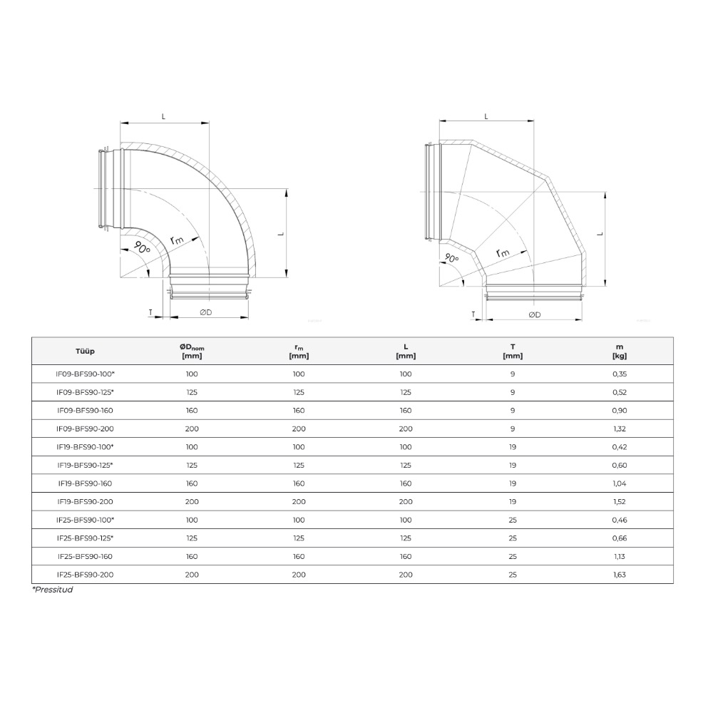 Isoleeritud põlv 90° 100mm tihendiga, isolatioon 19mm