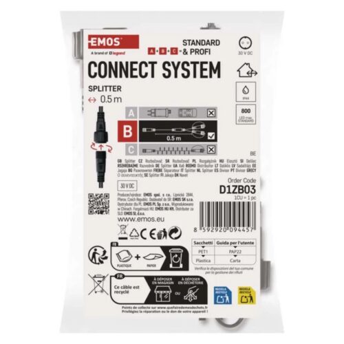 Jagur valguskettide ühendamiseks, standardne must, 0,5 m, õue/tuppa