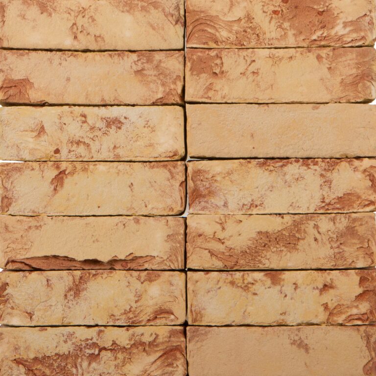 Belgias toodetud kollakas-roosakas liivatatud pinnaga tellis.