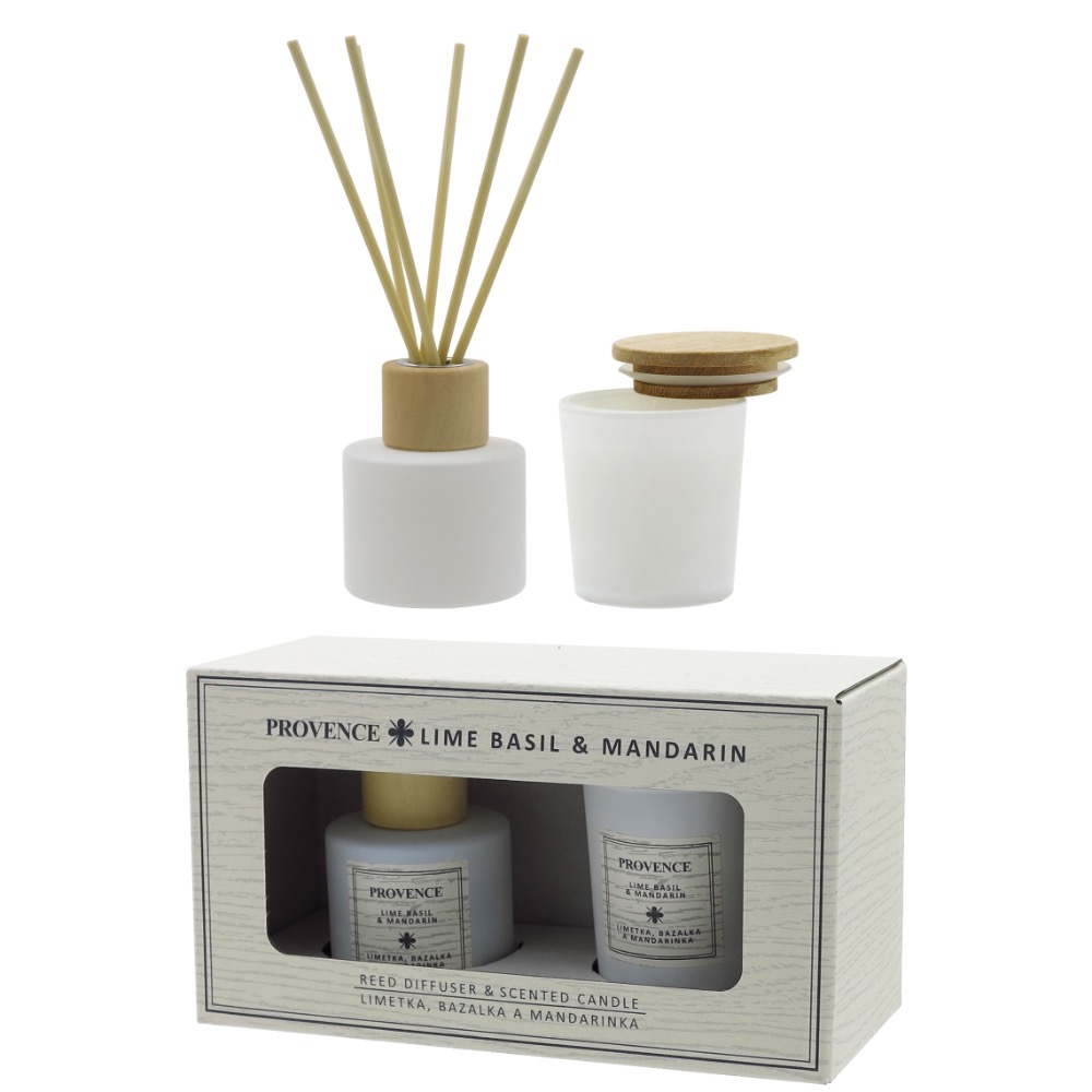 Kinkekomplekt õhuvärskendaja + lõhnaküünal laimibasiilik & Mandariin