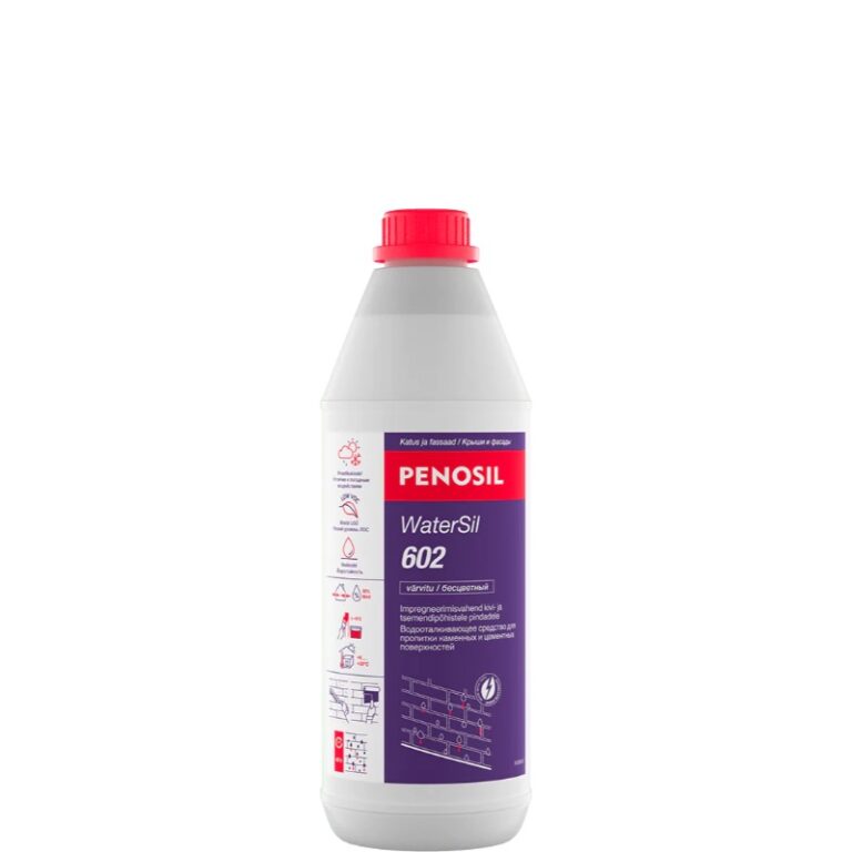 PENOSIL WaterSil 602 on vesialusel immutusvahend looduskivi-, tellis-, betoon- ja krohvipindadele. Tungib sügavale materjali pooridesse ja moodustab pärast mõnepäevast kuivamist 5–10 aastaks vetthülgava pinna.