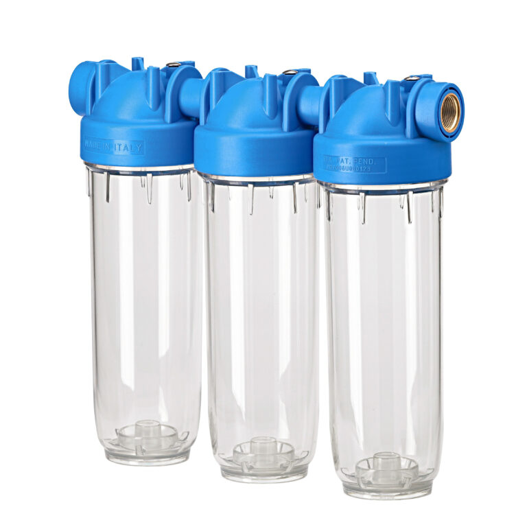 3-ne veefilter 10″ külmale veele, ühendused 3/4″, komplektis seinakinnitus ja võti Toote kõrgus: 10″ Toote mõõdud: 325x336x107 mm.