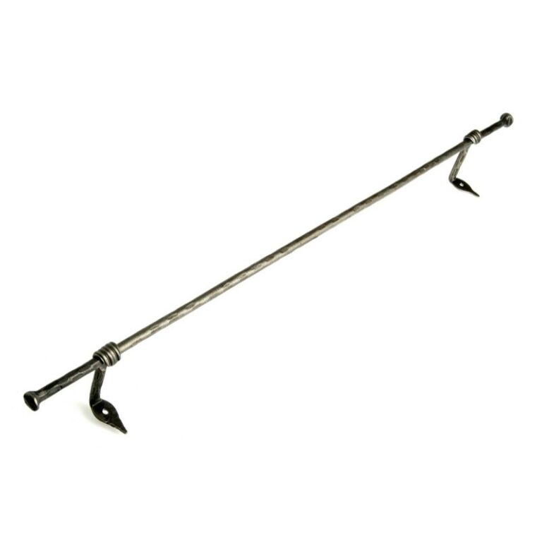 Pikkus 90 cm, kinnituste vahe ~69 cm, kaugus seinast ~6 cm, kaetud mati pulberlakiga.
