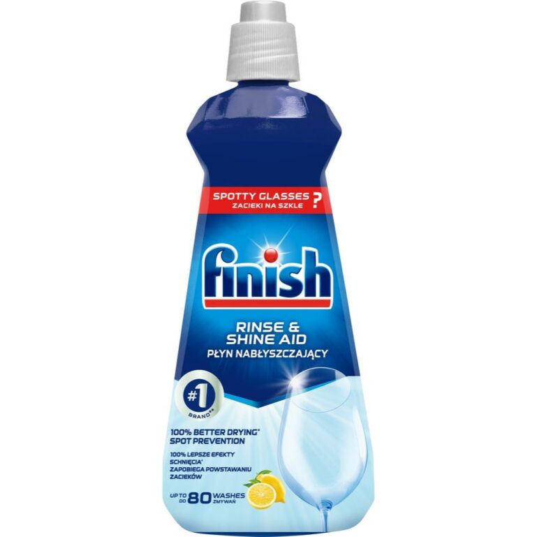 Finish loputusvahendil on 5 tõhusat toimeainet ja klaasikaitse koostiosa* säravamate ja kuivemate** nõude saamiseks. See viiekordne toime loputab sette, kiirendab kuivamist, võitleb veeplekkidega, annab kaitse ja tagab hiilgava sära.