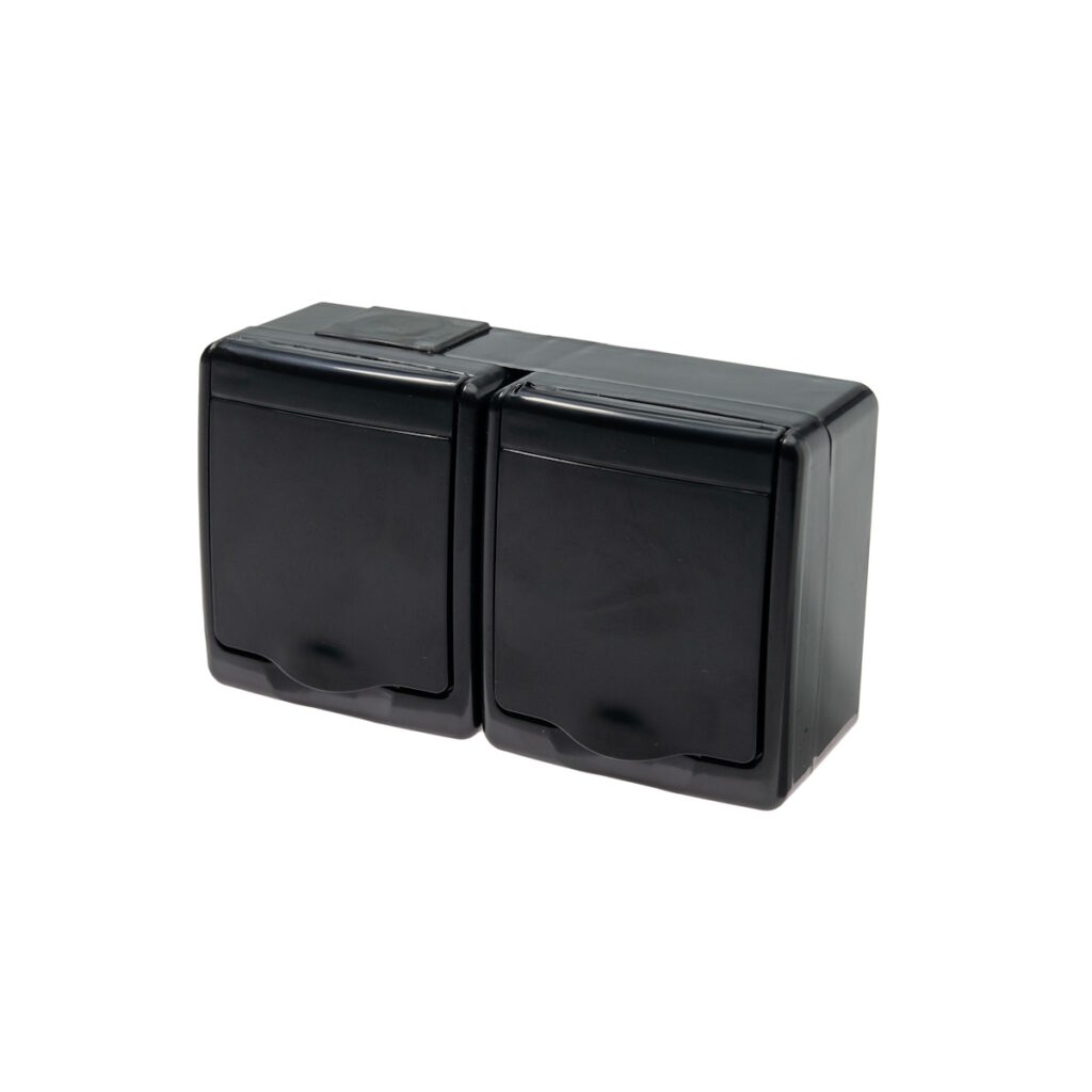 Pinnapealne maandusega 2-ne pistikupesa, kaanega must