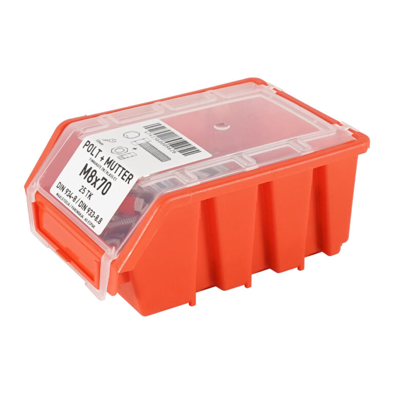Karp on läbipaistva kaanega ja selgesti loetava etiketiga, mis lihtsustab õige tarviku leidmist.