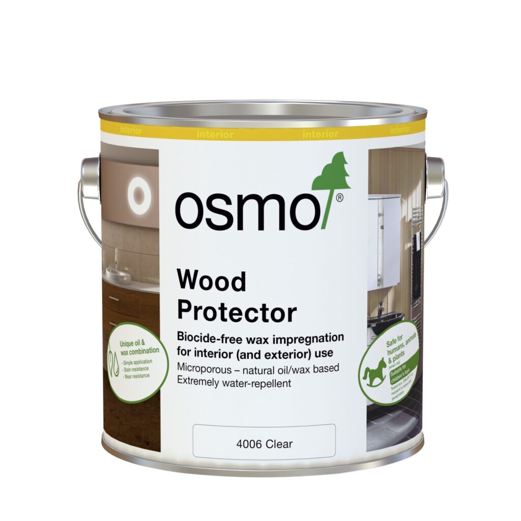 Sobib kasutamiseks: Osmo puidukaitsevahend sobib kõikidele puiduliikidele sisetingimustes, nt. puitpõrand, mis on tundlik seenekahjustusele (nt. mänd), aknaraamid, puit vannitubades jne., samuti välistingimustes, kus oleks vaja kasutada biotsiidivaba immutust, nt. laste mänguasjad ja liivakastid.