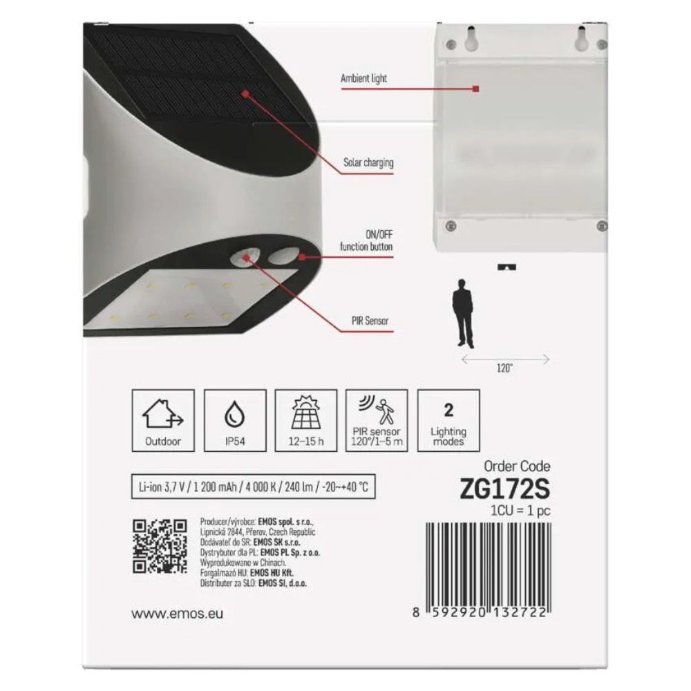 Solar LED-valgusti LUMI kantav koos PIR-iga, valge, neutraalne valge
