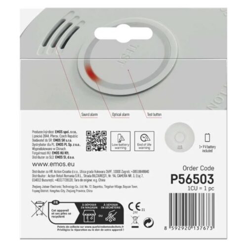 Meie suitsuandur on loodud maksimaalse ohutuse ja töökindluse tagamiseks. Tänu optilisele ja helisignaalile hoiatab see teid koheselt ohu eest. 85 dB valjuhäälne häire on ideaalne valik ka suurtes ruumides, tagades, et olete alati õigeaegselt informeeritud. Sellel detektoril on madalad kasutuskulud ja pikk anduri eluiga, mis on kuni 10 aastat.