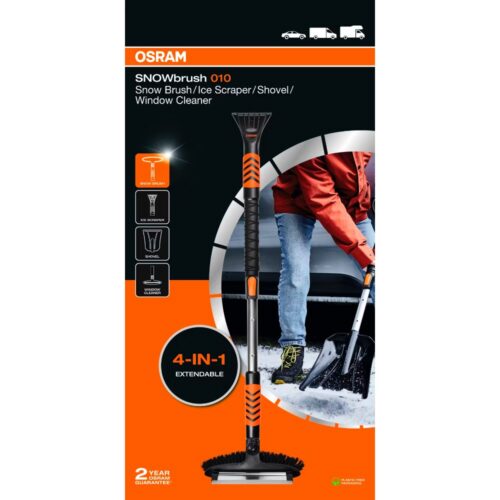 OSRAMi 4-in-1 teleskoopfunktsiooniga talvetööriist ühendab ühes seadmes lumelabida, lumeharja, jääkraabitsa ja aknapuhasti, muutes auto puhastamise talvehommikuti märksa kiiremaks ja mugavamaks.