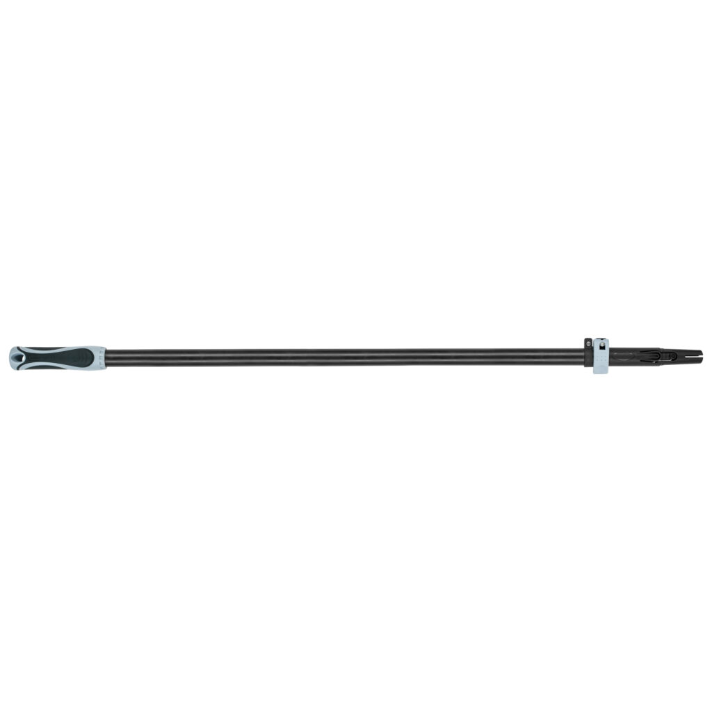 Nõudlikuks kasutamiseks sobiv teleskoopvars, millel on ergonoomiline kummist käepide ja astmeteta pikkuse reguleerimine.