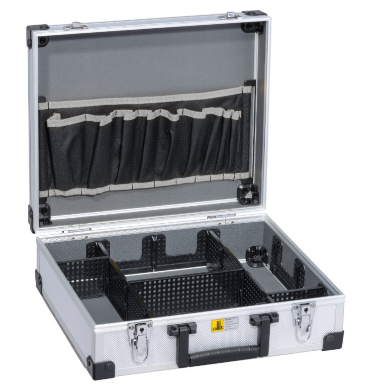 Kvaliteetne alumiiniumist, plastist ja tugevatest küljeplaatidest valmistatud tööriistakast.