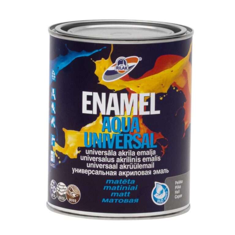 ENAMEL AQUA UNIVERSAL universaalne vesidispersioon-akrüülemail sise- ja välistingimustes kasutamiseks. Mõeldud puit-, betoon-, krohvitud ja tellistest pindade, varem värvitud metallpindade, ning samuti kipsplaatide jms värvimiseks.