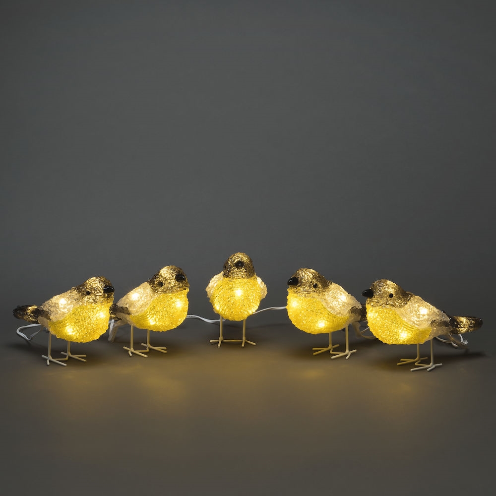 Valgusdekoratsioon lindudega, 5 sooja valgusega kujukest.