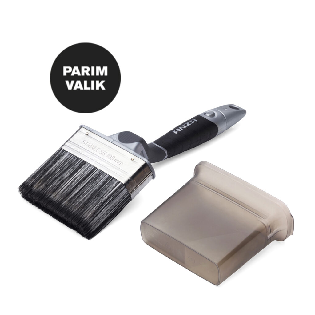Kvaliteetne välistööde pintsel fassaadide, aedade jm värvimiseks. Väga hea mahutavuse ja kulumiskindlusega harjased, jätab ühtlase värvikihi, roostevabad metallosad. Töötades ei teki lihaspingeid, sest pintslil on kaldus ja mugav käepide. Sobib Anza pikendusvarrega. Kaasas nn pintsli kork, mis hoiab pesemata pintsli kuivamast kuni 2 nädalat.