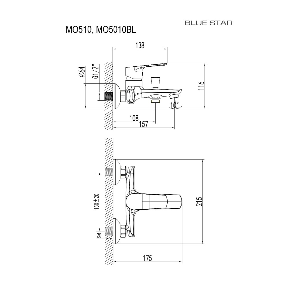 Toote mõõdud: Kõrgus = 104 mm | Laius = 180 mm | Kaugus tsentrist tilani = 157 mm