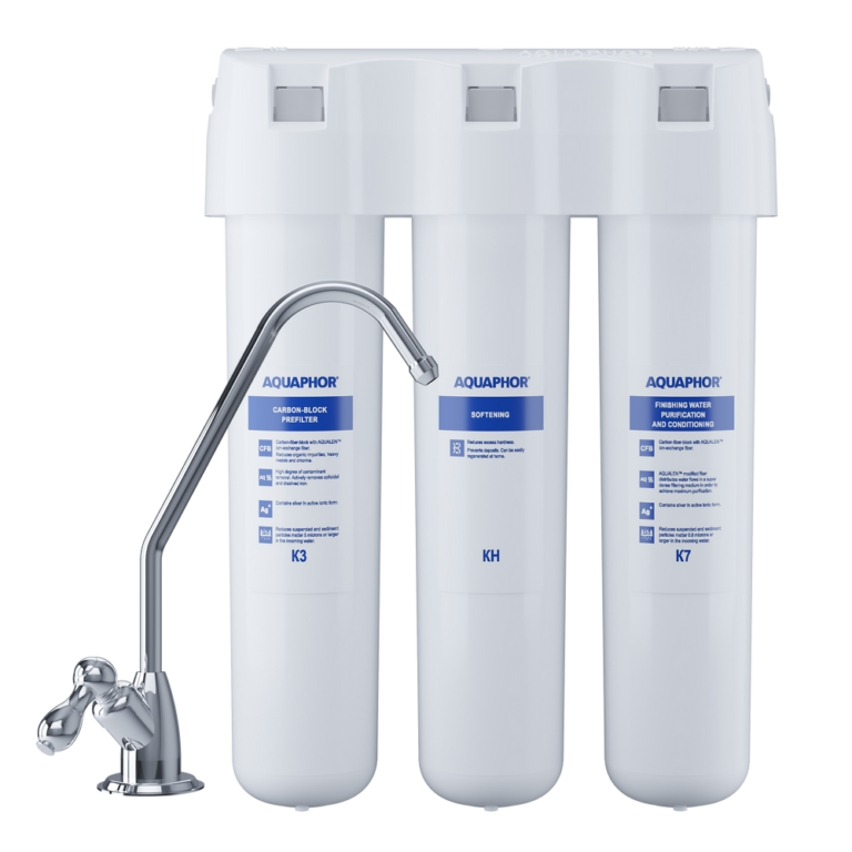 3-astmeline joogiveefilter AQUAPHOR Crystal H, komplektis: korpus, element K3 presssüsi 5 mikronit, element KH pehmendav, element K7 presssüsi 0,8 mikronit, veekraan ja ühendustarvikud ,süsteemi tootlikus 2 l/min, elementide resurss kuni 6000 l
