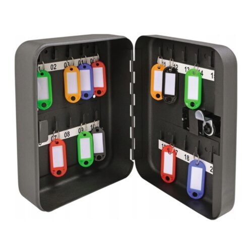 20 riputuskonksu ja komplektis olevad erivärvilised võtmehoidjad siltidega muudavad võtmete haldamise lihtsaks.